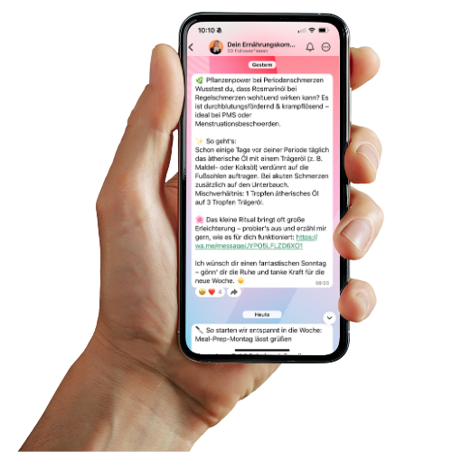 Tägliche Tipps rund um gesunde, pflanzliche Ernährung und dein Wohlgefühl – speziell für Frauen & Mamas und komplett kostenlos.