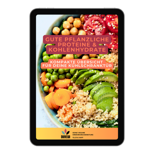 Stressfrei, ausgewogen, pflanzlich gut versorgt – mit meiner kostenlosen Übersicht über vegane Protein- und Kohlenhydratquellen weißt du immer, welche Lebensmittel dich und deine Familie optimal mit Energie versorgen.